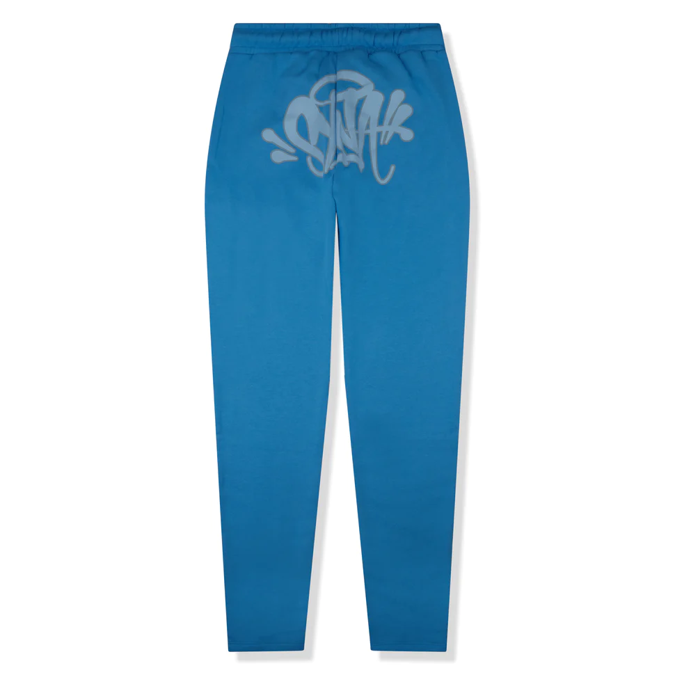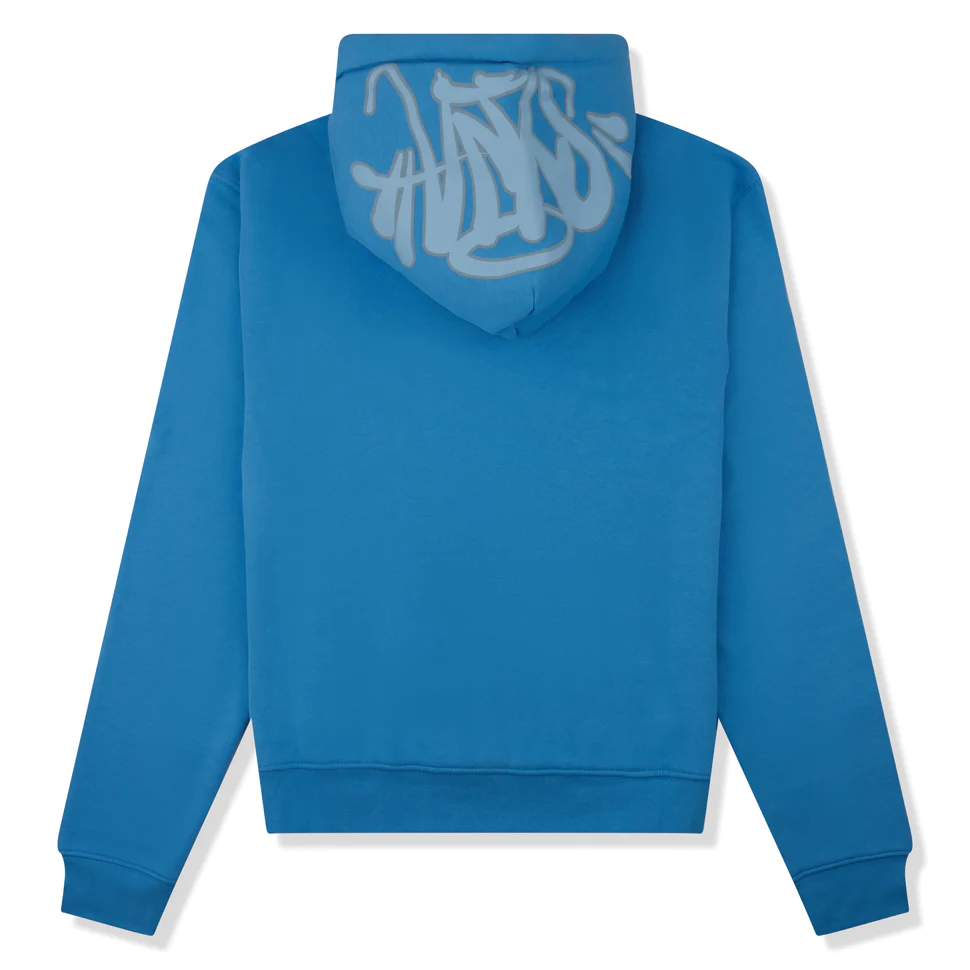Central Cee’s highly anticipated Syna world tracksuit (aka Syna logo tracksuit) in Blue with Baby blue accents and Chunky Beige rope draw strings. This item is sold as a set and includes the hoodie and joggers.