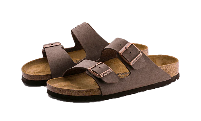 La Birkenstock Arizona Birko-Flor Nubuck Mocha rivela una canna aperta in Birko-Flor Brown. Si tratta di un materiale sintetico sviluppato da Birkenstock che riprende l’aspetto del nabuk. Classico tra i classici, questa silhouette assicura anche il massimo comfort grazie al plantare in sughero e lattice.