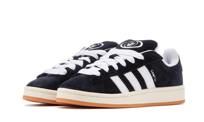 Là ADIDAS CAMPUS 00S CORE Black (Nero) presenta una base in pelle nera, accompagnato da Tre spesse strisce bianche Sul pannello laterale, le caratteristiche del marchio e concesse alla scheda del tallone. Vicino a Campus degli anni ’80, questo modello rivela anche una suola ingiallita, per accentuare l’effetto Vintage ?, accompagnato da una suola in gomma. A differenza della versione per adulti, la suola è bianca sui modelli GS.