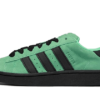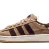Là Adidas Campus 00’s Tokyo presenta una base in canapa beige, accompagnato da Tre strisce spesse in pelle scamosciata marrone Sul pannello laterale, le caratteristiche del marchio e concesse alla scheda del tallone. Vicino a Campus degli anni ’80, questo modello rivela anche una suola ingiallita, per accentuare l’effetto Vintage ?, con una suola in gomma fosforescente.