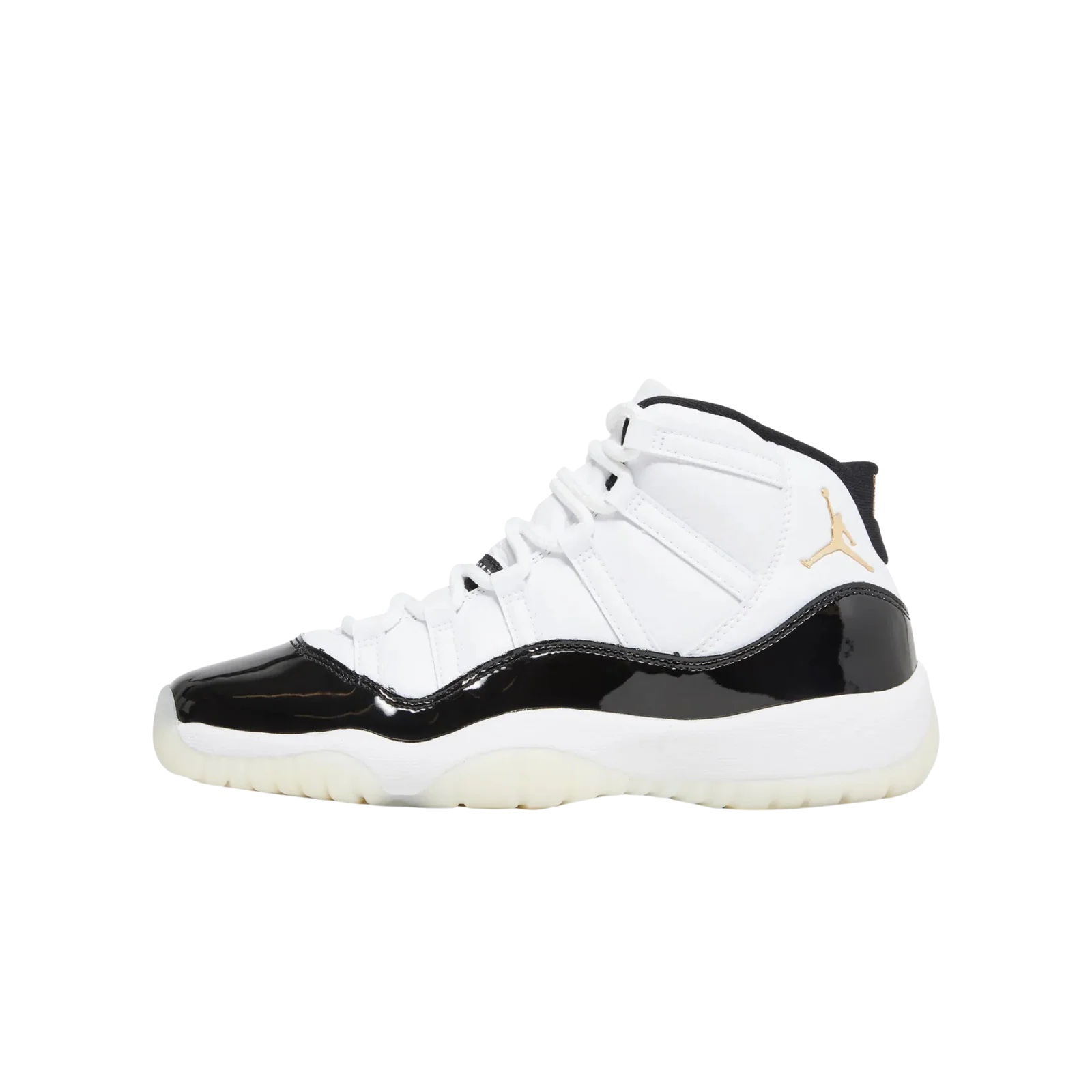 La Air Jordan 11 Retro DMP presenta una tomaia in mesh balistico nero, parafango in vernice nera, Jumpman rosso e “23” sul tallone. L’intersuola bianca e la suola completano il design iconico e contrastano con il resto della coppia.