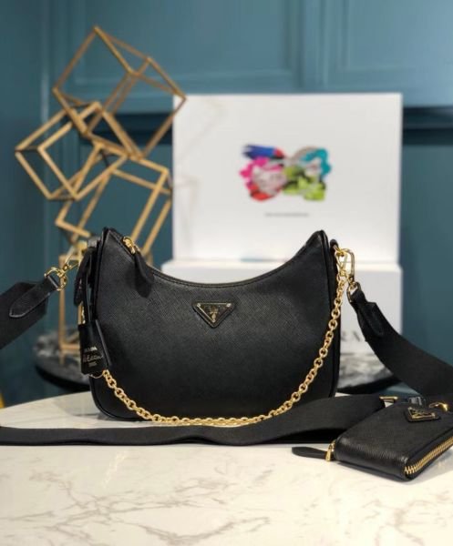Riedizione 2005 Borsa in pelle Saffiano Nera